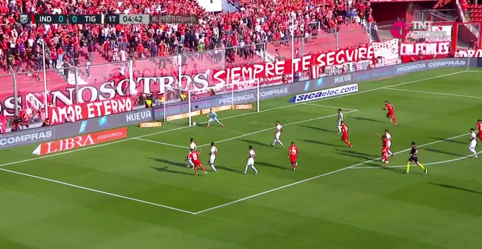 Independiente llegó al Libertadores de América-Ricardo Enrique Bochini con la mente puesta en conseguir tres puntos frente a un rival complicado como Tigre. Para esto, Zielinski paró su típico 4-4-2 con Rey; Barcia, Barreto, Báez, Costa; B. Martínez, Ortíz, Sarrafiore, Vallejo; Cauteruccio y Giménez. Sorprendente la inclusión de Martín Sarrafiore como medio de contención o dicho popularmente, 'número 5'.