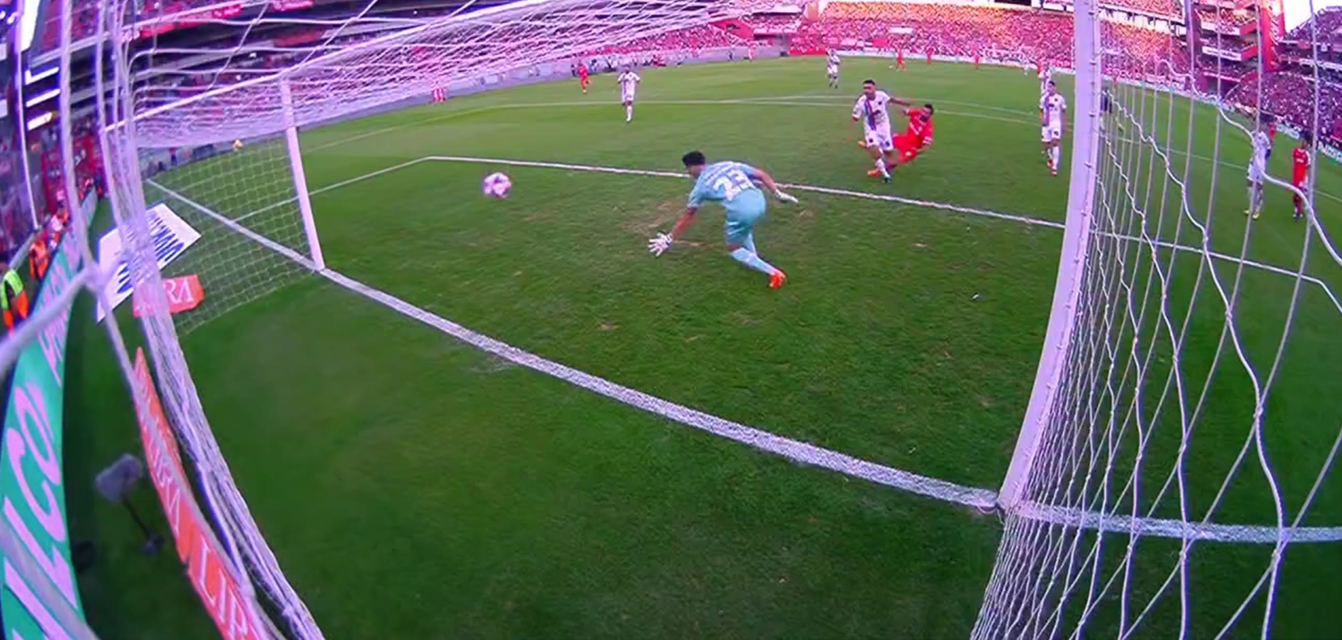 Pocos minutos después, el Rojo crea una excelente jugada por banda izquierda: Cazares pone un pase bombeado para Cauteruccio a espaldas de la defensa y el uruguayo resuelve con un pase espectacular entre las piernas de Aguilera, esto acabaría con Cuero empujando la pelota hacia dentro del arco. Lamentablemente, esta acción sería anulada por un fuera de juego milimétrico.